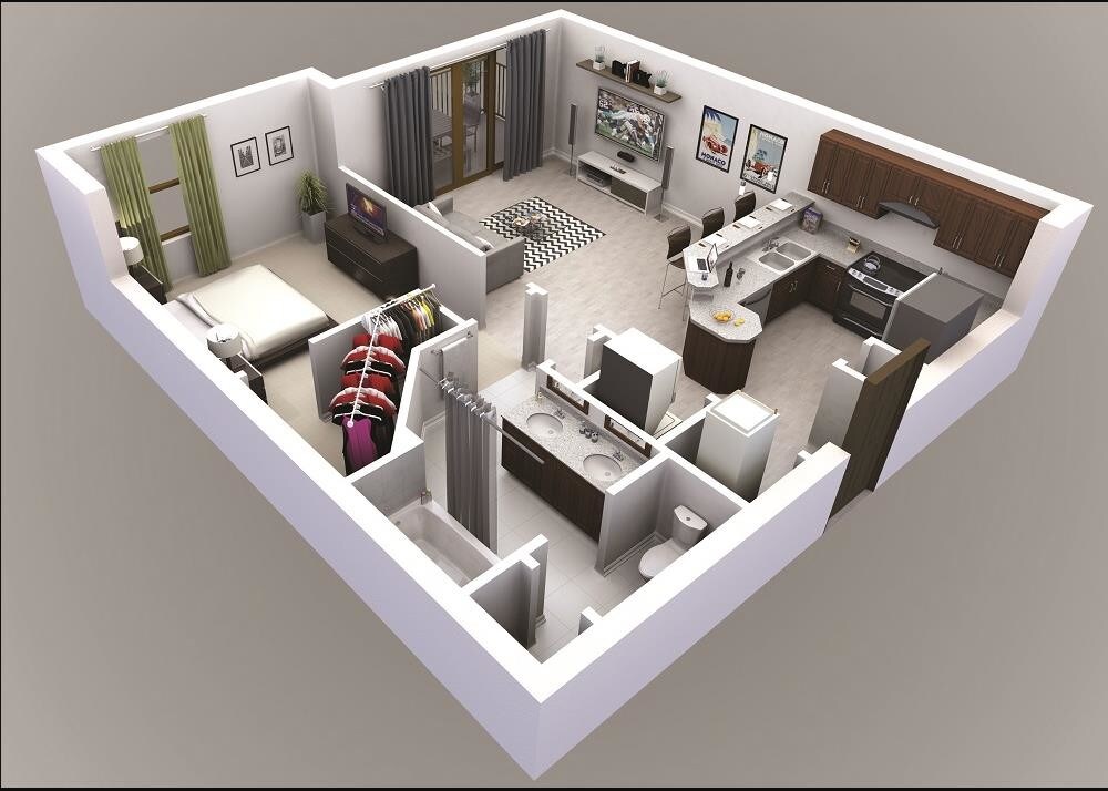1 Dormitorio, 1 Baño, 791 pies²Disponible AhoraGalería del Modelo