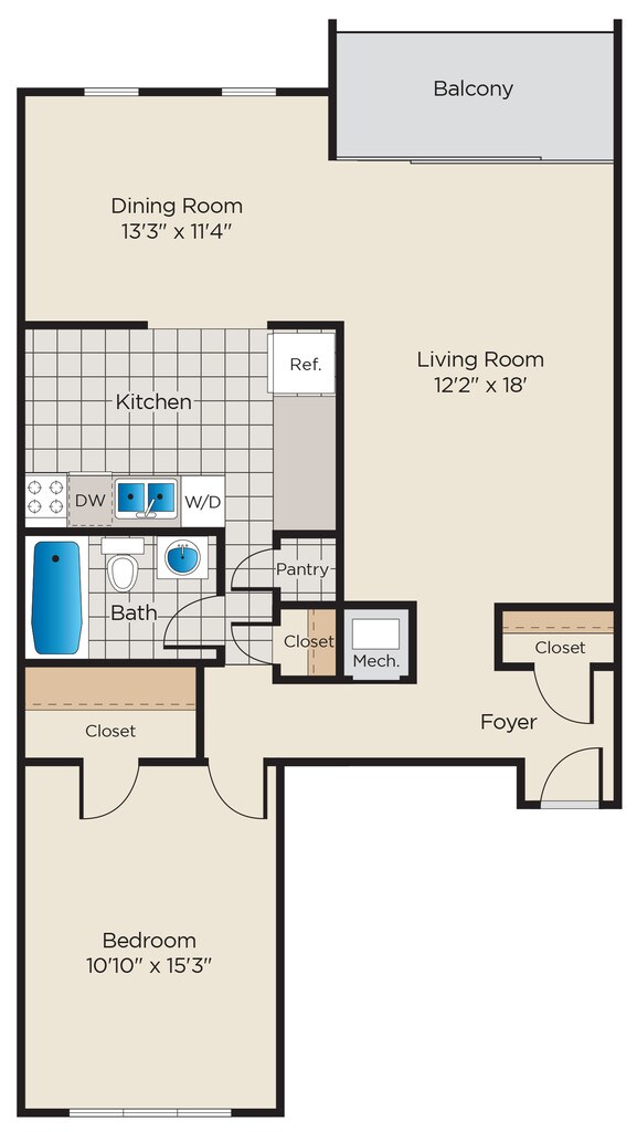 1 Dormitorio, 1 Baño, 960 pies²Disponible AhoraGalería del Modelo