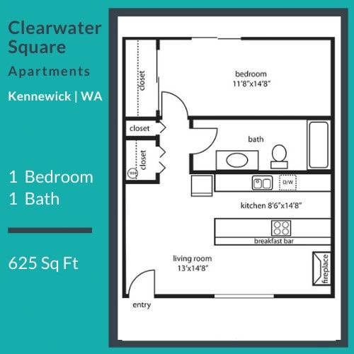 Modelo de apartamento: 1x11 Dormitorio, 1 Baño, 625 sq ftDisponible Ahora![]()