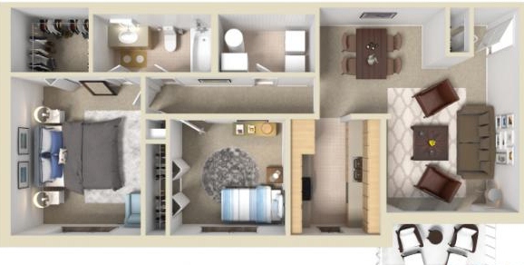 2 Dormitorios, 1 Baño, 895 pies²Disponible AhoraGalería del Modelo