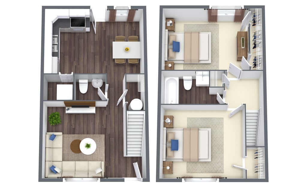 2 Dormitorios, 1.5 Baños, 1075 pies²Disponible AhoraGalería del Modelo