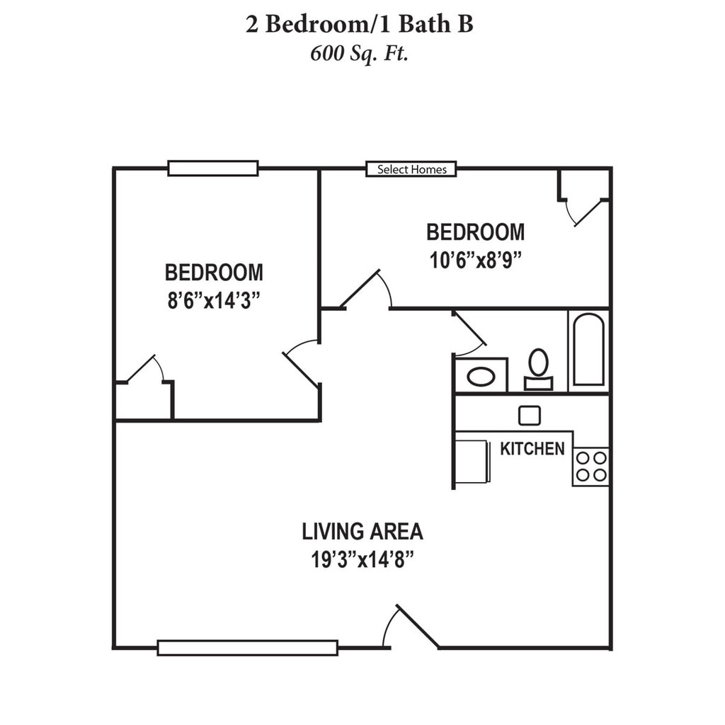 2 Dormitorios, 1 Baño, 600-650 pies²Galería del Modelo
