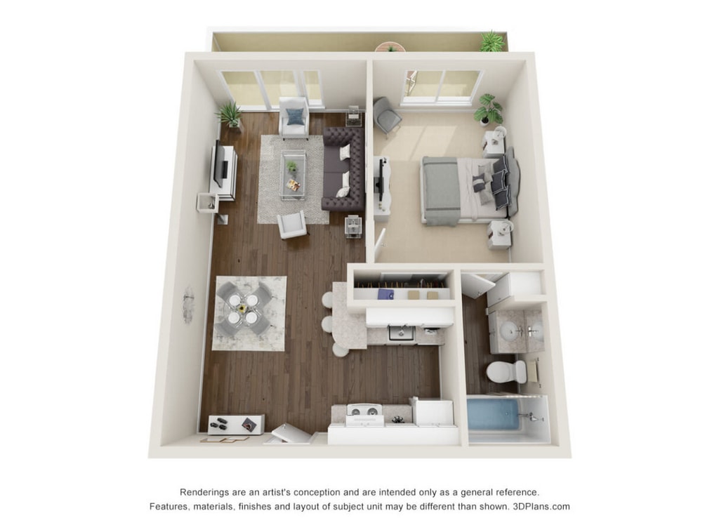 Modelo de apartamento: 1x1$2,0901 Dormitorio, 1 Baño, 575 sq ftDisponible March 31, 2026PlanosFotos![]()