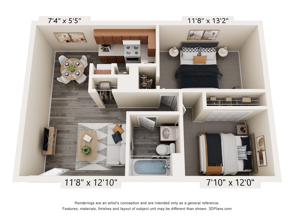 1 Dormitorio, 1 Baño, 575 pies²Disponible AhoraGalería del Modelo