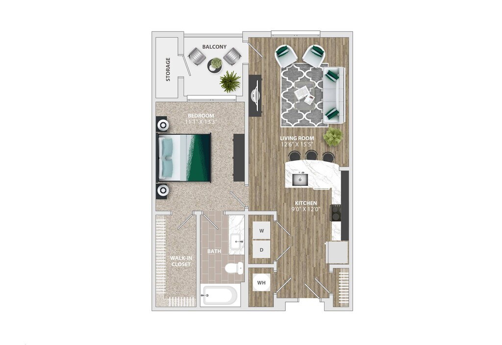 1 Dormitorio, 1 Baño, 757 pies²Disponible AhoraGalería del Modelo