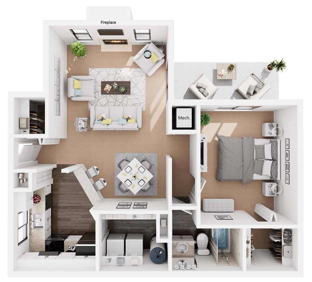 1 Dormitorio, 1 Baño, 850 pies²Galería del Modelo