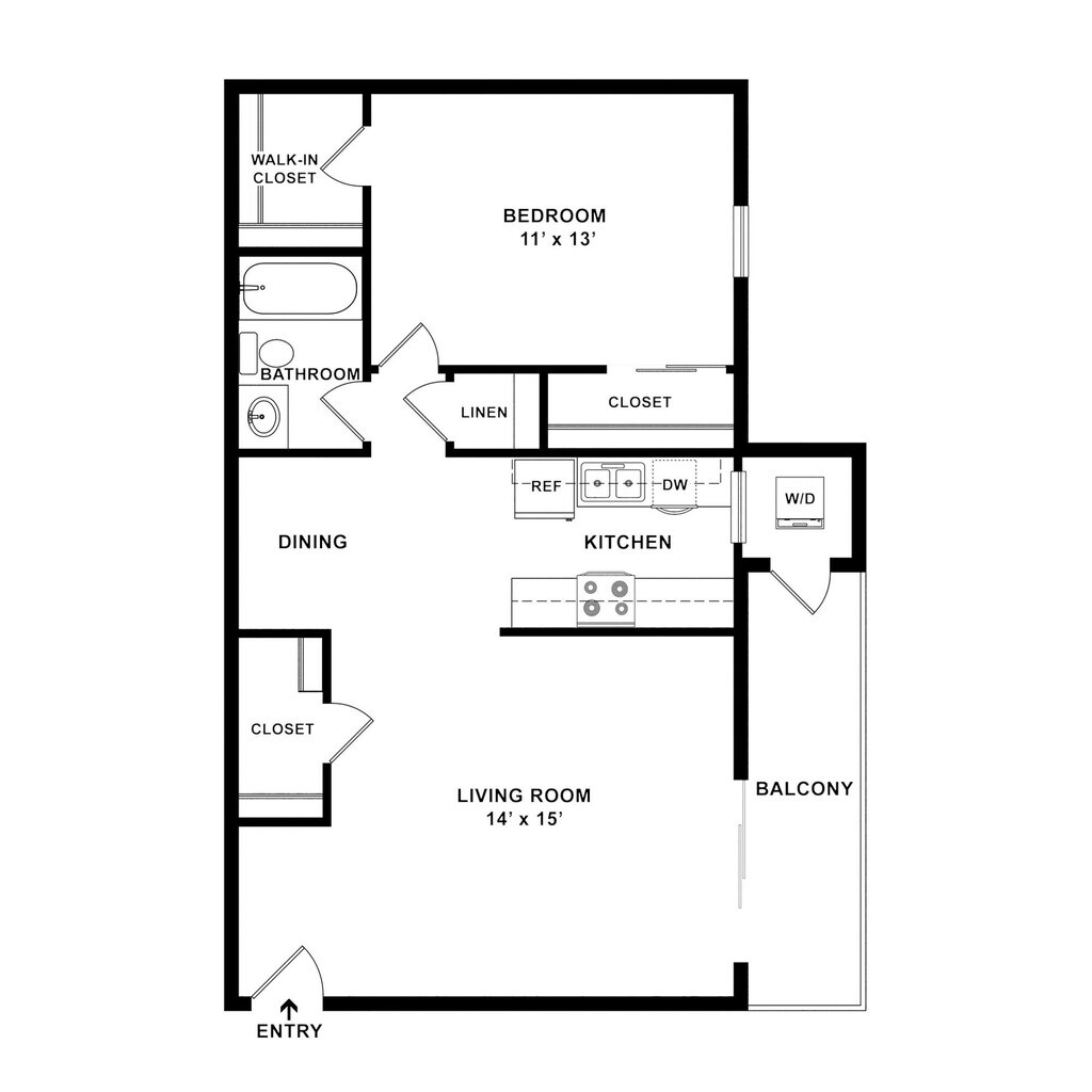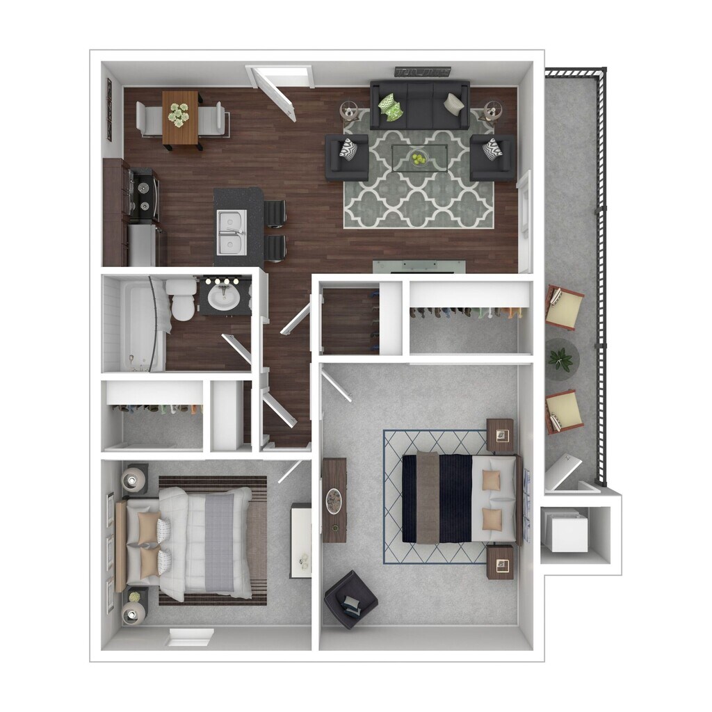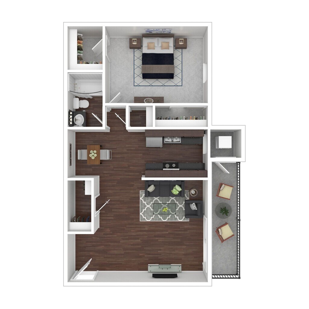1 Dormitorio, 1 Baño, 720 pies²Disponible AhoraGalería del Modelo