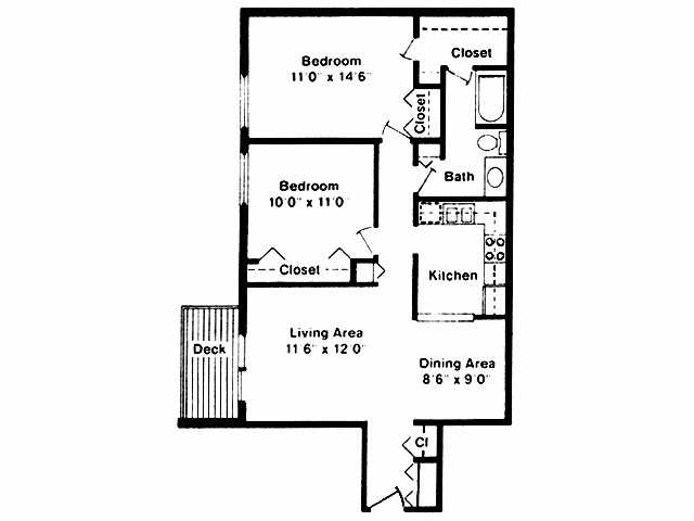 Apartment Model: Plan E$1,3852 Bedroom, 1 Bath, 800 sq ftUnavailablePlan E - Floorplan 1 Plan C