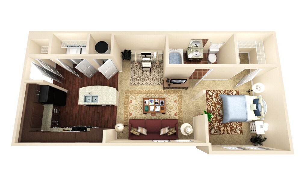 Estudio, 1 Baño, 665 pies²Disponible AhoraGalería del Modelo
