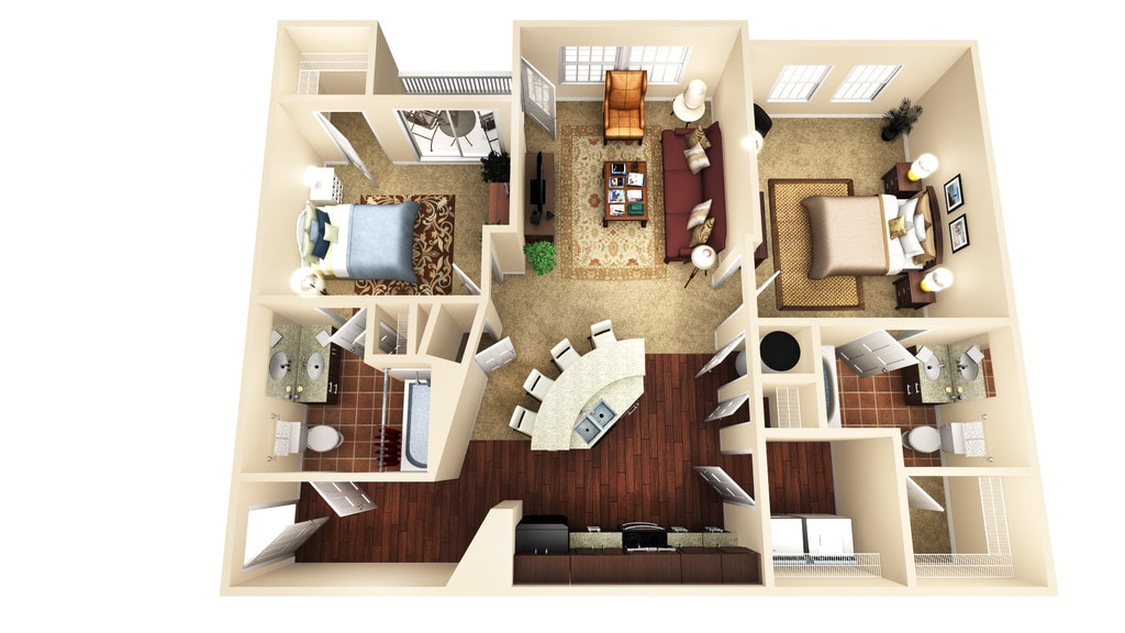 - Planos de planta espectaculares de una, dos y tres habitaciones