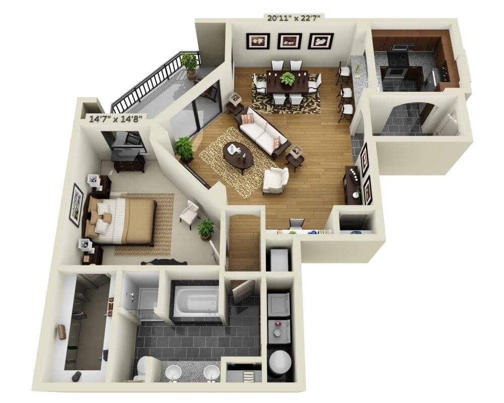 1 Dormitorio, 1 Baño, 723 pies²Precio Mensual TotalDisponible AhoraEl más baratoEsta opción tiene los precios más bajos para este modeloGalería del Modelo