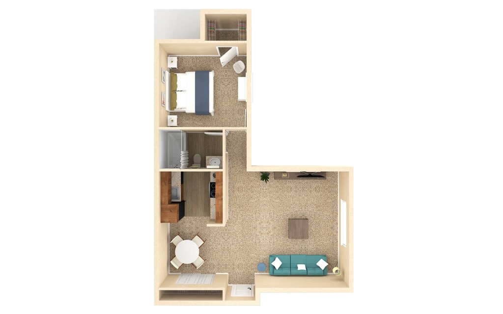 1 Dormitorio, 1 Baño, 740 pies²Disponible AhoraGalería del Modelo