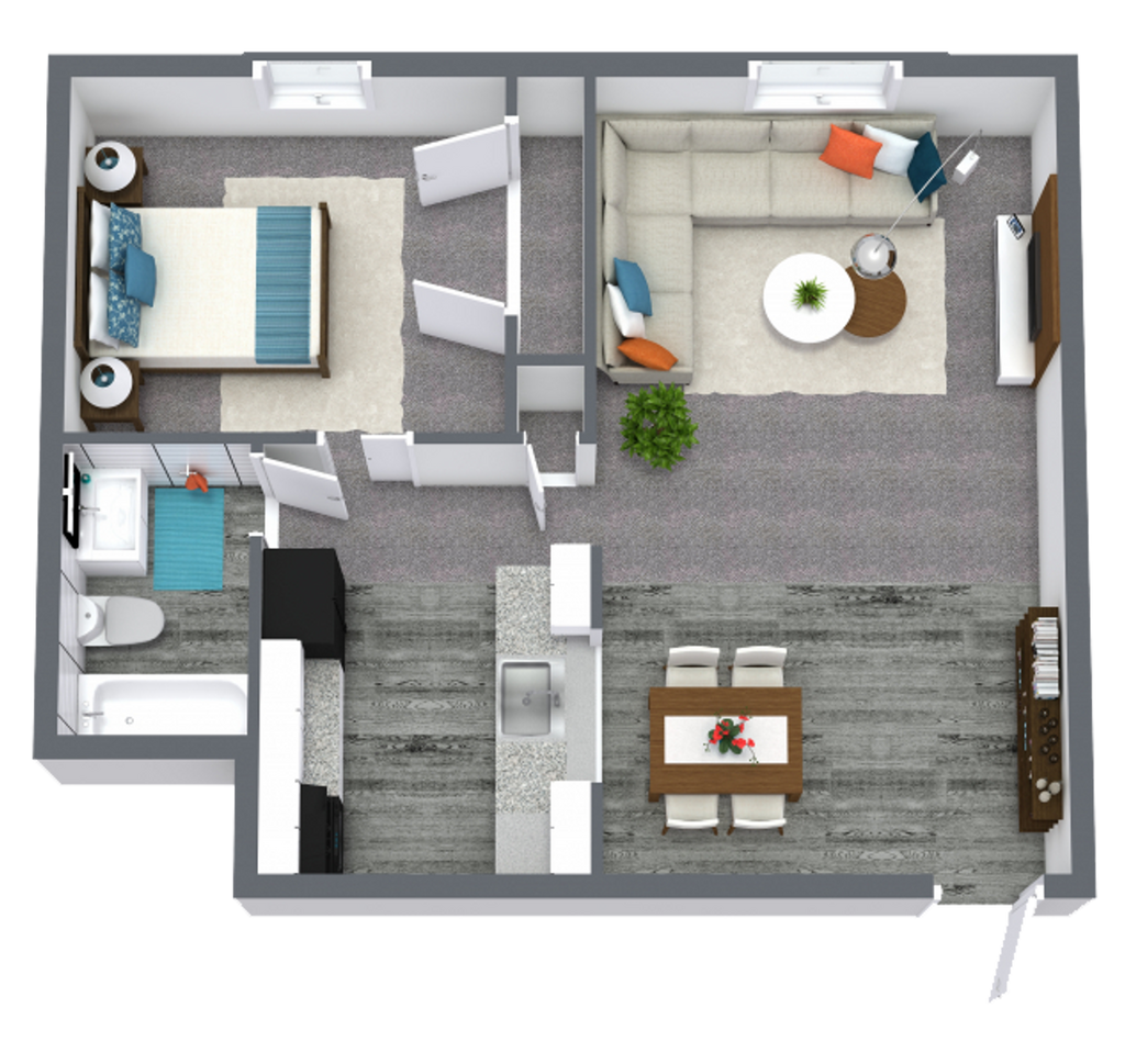 1 Dormitorio, 1 Baño, 650 pies²Disponible AhoraGalería del Modelo