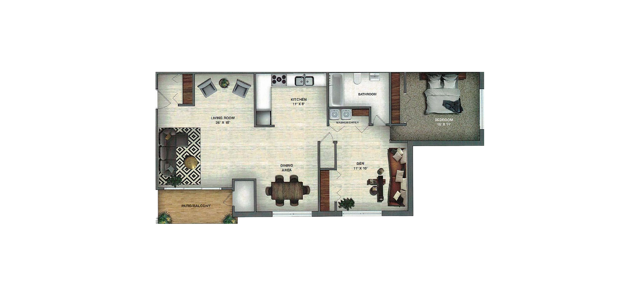 1 Dormitorio, 1 Baño, 945 pies²Disponible AhoraGalería del Modelo