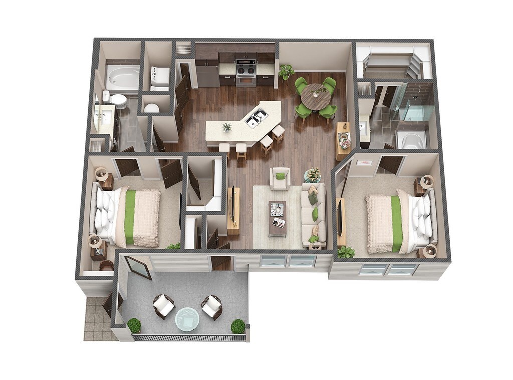 2 Dormitorios, 2 Baños, 1053 pies²Disponible AhoraGalería del Modelo