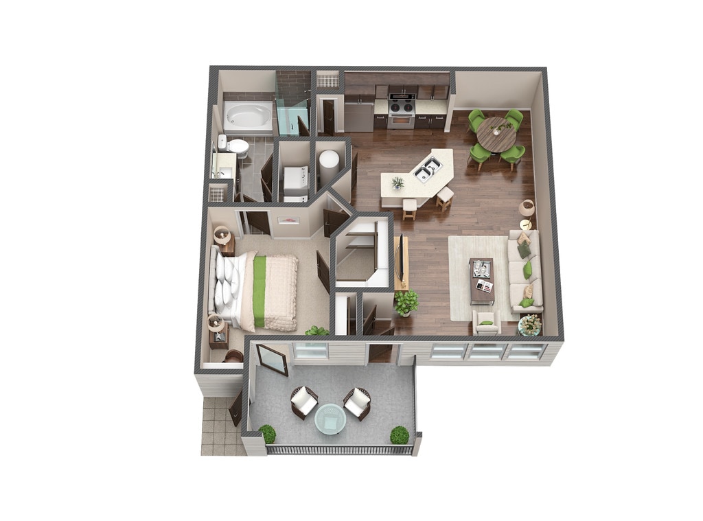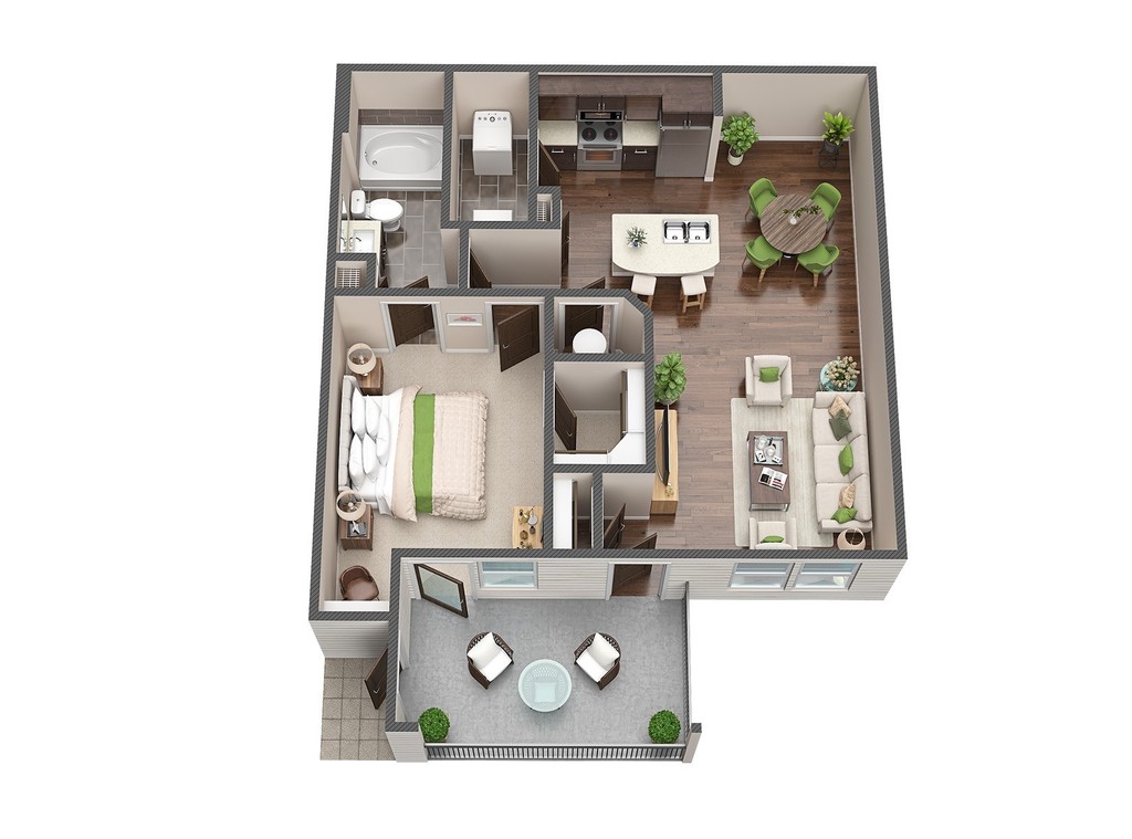 1 Dormitorio, 1 Baño, 1008 pies²El más grandeEsta opción tiene las unidades más grandes para este modeloGalería del Modelo