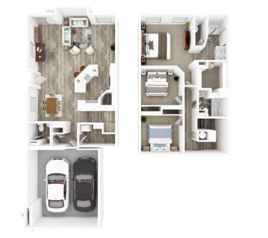 Modelo de apartamento: SagebrushDesde $2,7403 Dormitorios, 2.5 Baños, 1600 sq ftDisponible AhoraLos planos son representaciones artísticas. Todas las dimensiones son aproximadas. El producto y las especificaciones reales pueden variar en tamaño o detalle. No todas las características están disponibles en cada vivienda en alquiler. Por favor, consulta con un representante para obtener más detalles.