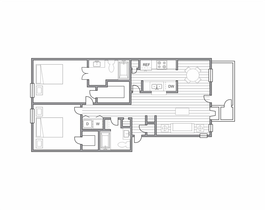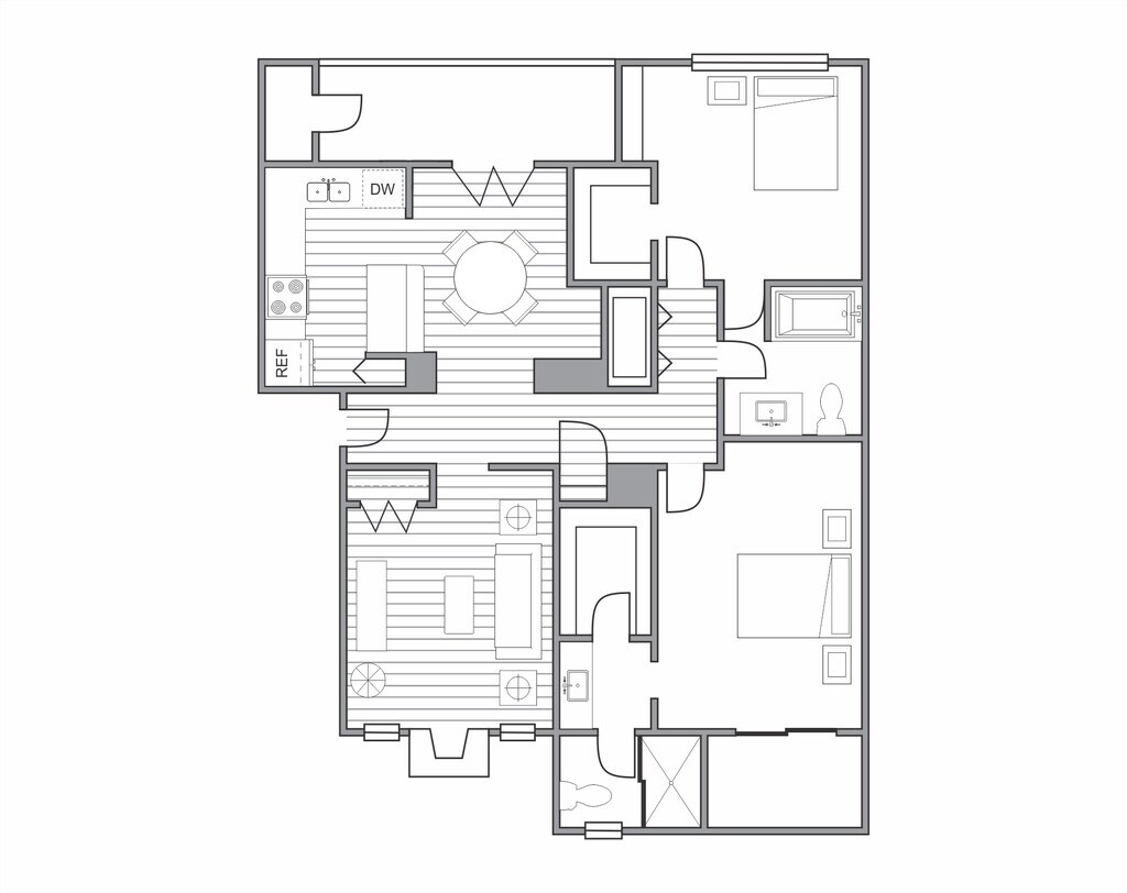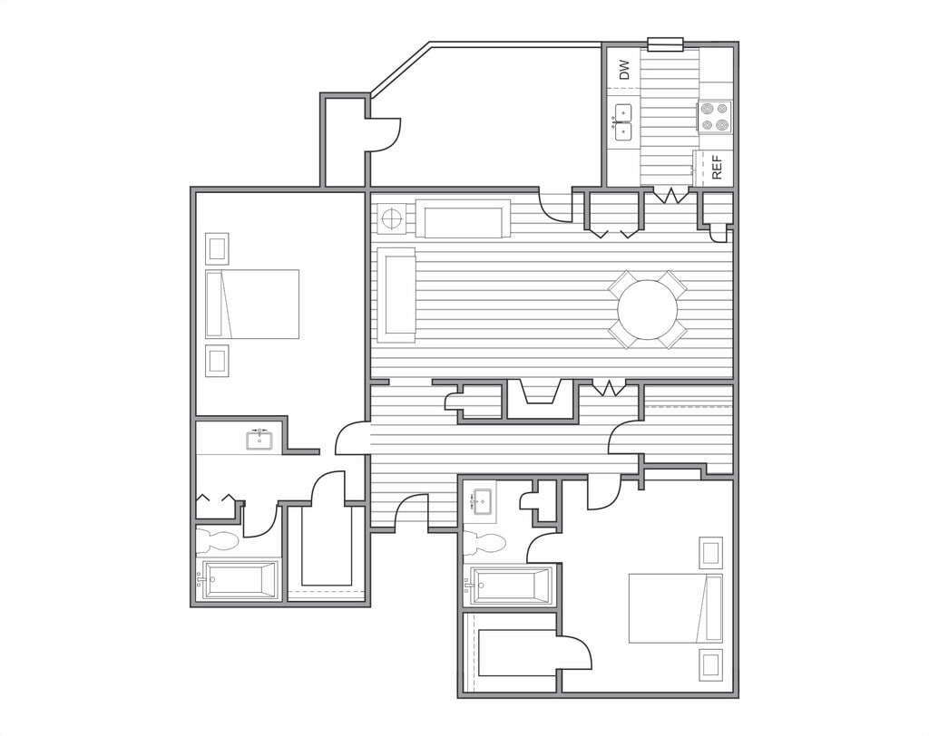 Modelo de apartamento: B32 Dormitorios, 2 Baños, 1115 sq ftNo Disponible![]()