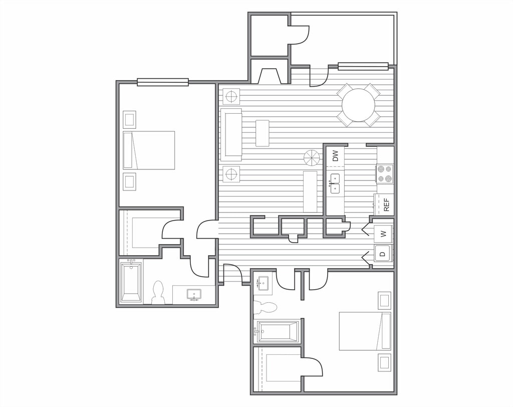 Modelo de apartamento: B22 Dormitorios, 2 Baños, 1027 sq ftNo Disponible![]()