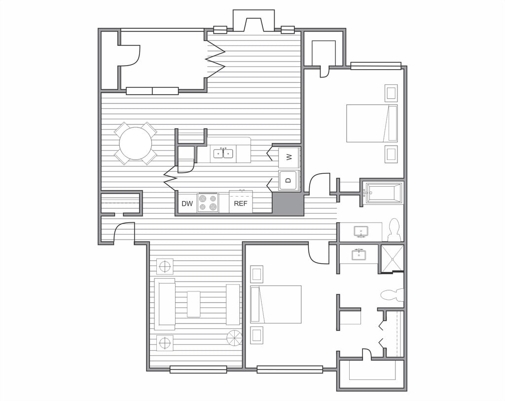 2 Dormitorios, 2 Baños, 1027 pies²Galería del Modelo