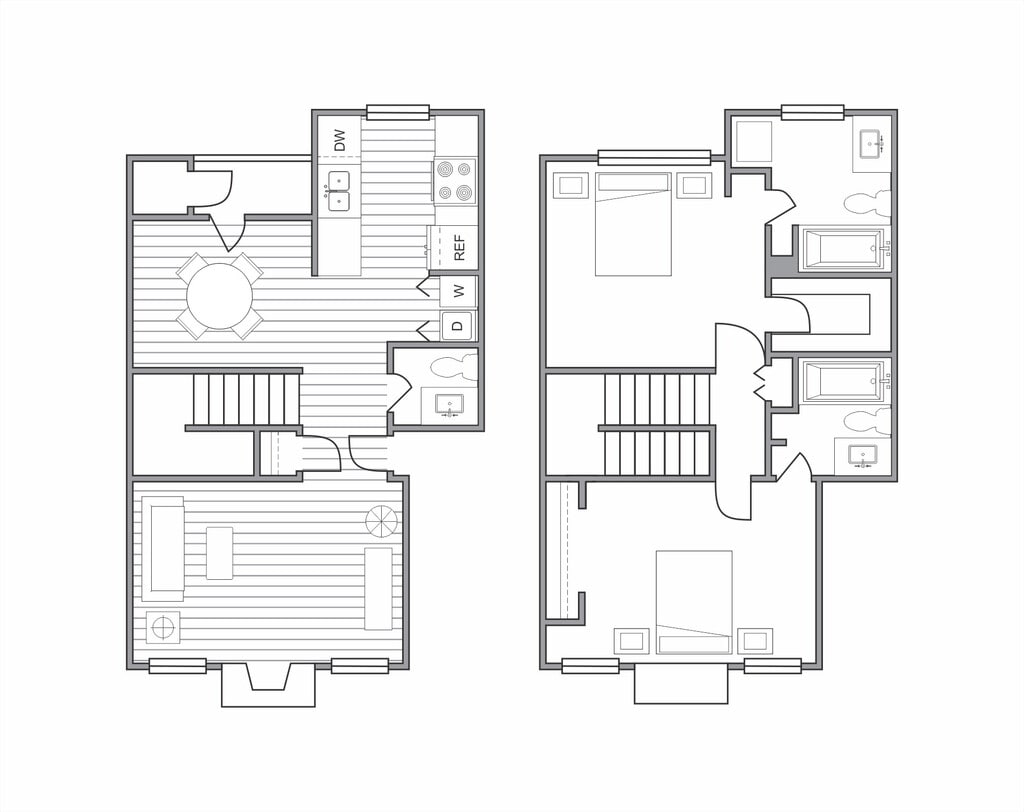 2 Dormitorios, 2 Baños, 1115 pies²Galería del Modelo