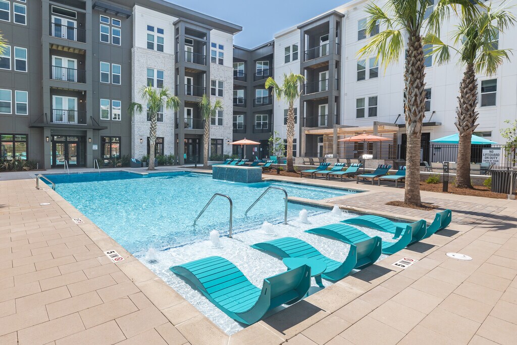 Founders Yard Apartments es NUEVO aquí en el mercado de West Ashley en Charleston, SC. Encuentra un nuevo hogar de lujo en uno de nuestros 341 amplios apartamentos en el lugar. Con una amplia combinación de apartamentos, ofrecemos apartamentos de 1, 2 y 3 habitaciones. Único en el área, nuestro complejo ofrece impecables residencias lujosas con espectaculares comodidades. Nuestros apartamentos de lujo tienen diseños de planos de planta espaciosos, balcones privados, encimeras de granito, electrodomésticos de acero inoxidable y muchos más acabados lujosos. Nuestros edificios de 4 pisos están equipados con elevadores y tienen acceso de entrada sin llave. Nuestras sorprendentes comodidades incluyen piscina estilo centro turístico, gimnasio abierto las 24 horas, estudio de yoga, casa club, centro de negocios, sala de juegos, parque y lavado de mascotas, lavado de autos, salón de hamacas y mucho más. Los apartamentos de Founders Yard están ubicados en una ubicación y un vecindario deseables, cerca de rutas de viaje diario, actividades, restaurantes y tiendas. El complejo está convenientemente ubicado para un fácil acceso al centro de la ciudad, playas y al aeropuerto internacional de Charleston. Todos los elementos de una vida de lujo se han alineado aquí en Founders Yard. ¡Encuentra tu hogar aquí HOY!