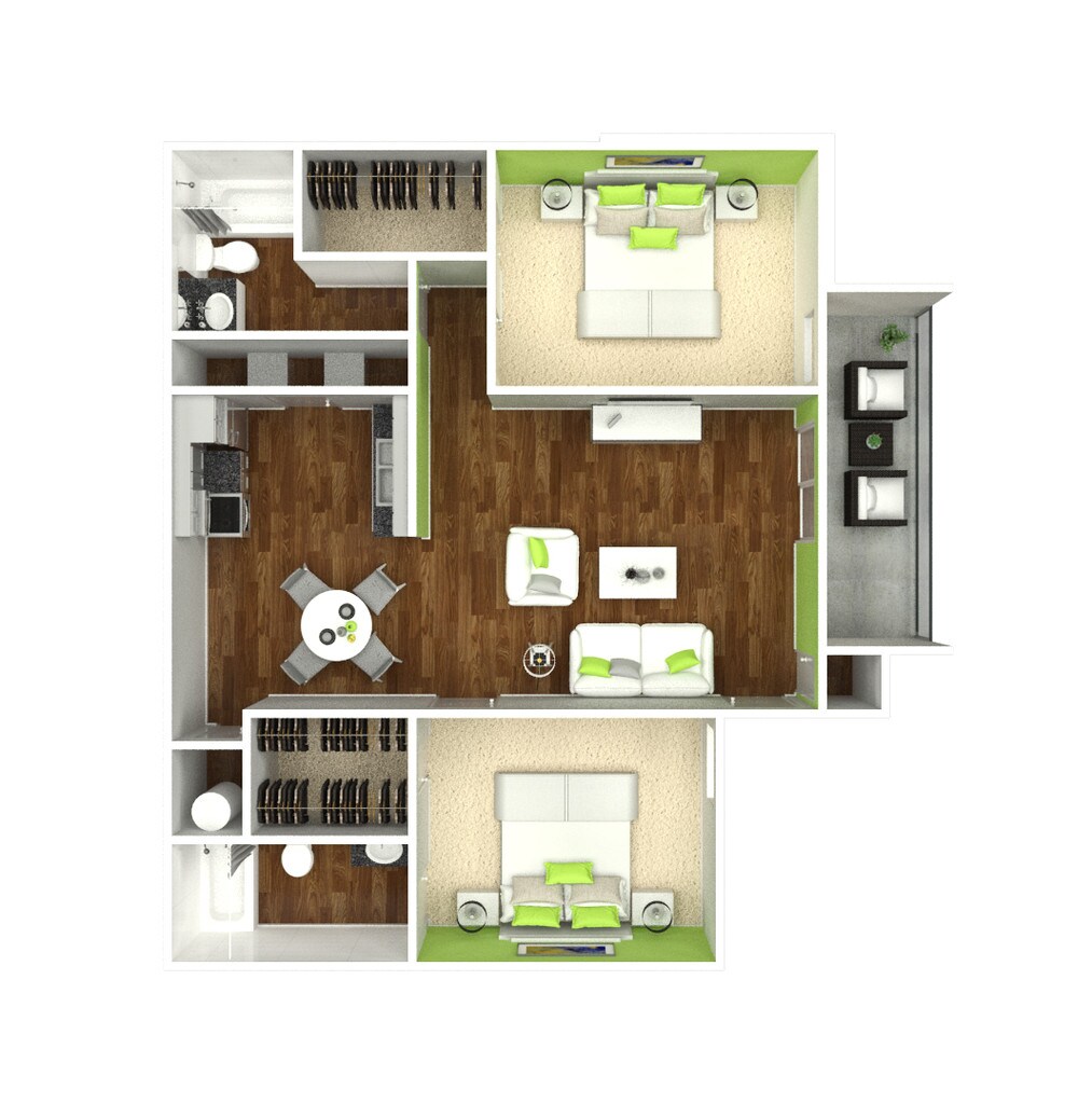 1 Dormitorio, 1 Baño, 750 pies²Disponible AhoraGalería del Modelo