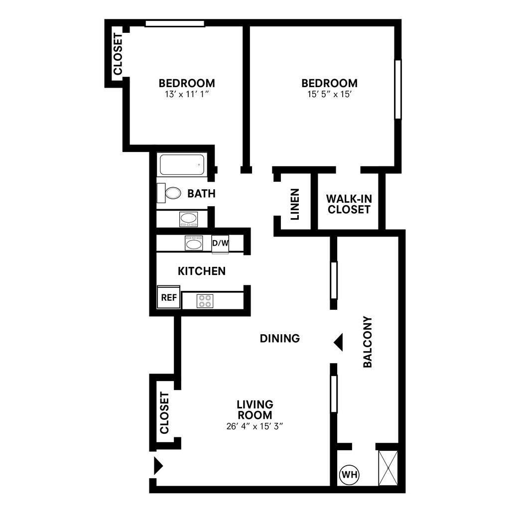 Two Bedroom - Plano 3 Los planos son representaciones artísticas. Todas las dimensiones son aproximadas. El producto y las especificaciones reales pueden variar en tamaño o detalle. No todas las características están disponibles en cada vivienda en alquiler. Por favor, consulta con un representante para obtener más detalles.