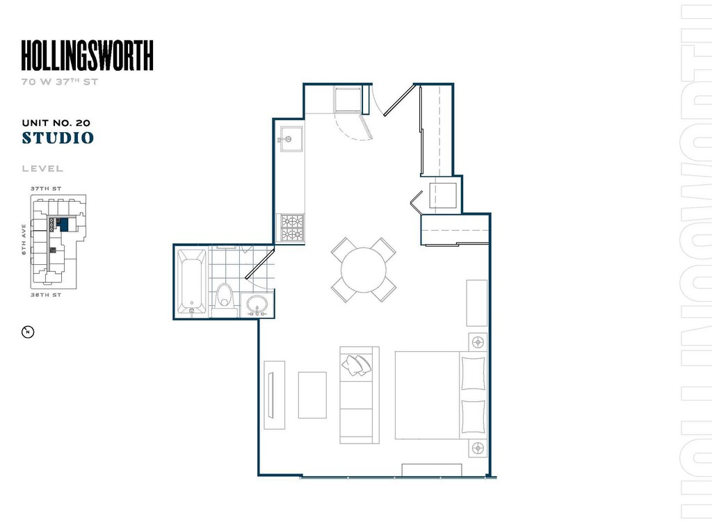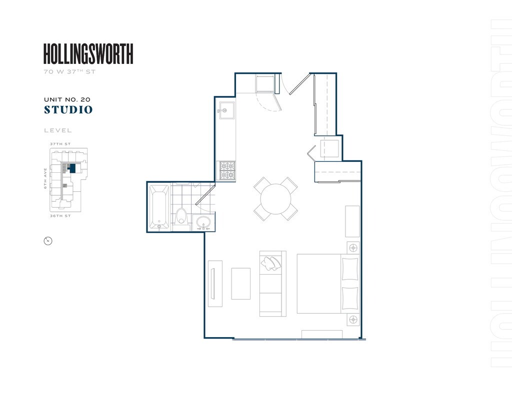 Hollingsworth se encuentra en el Barrio Empire State Building y el código postal 10018 de New York, NY.