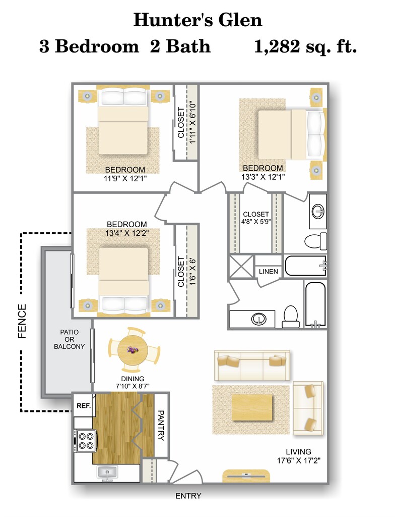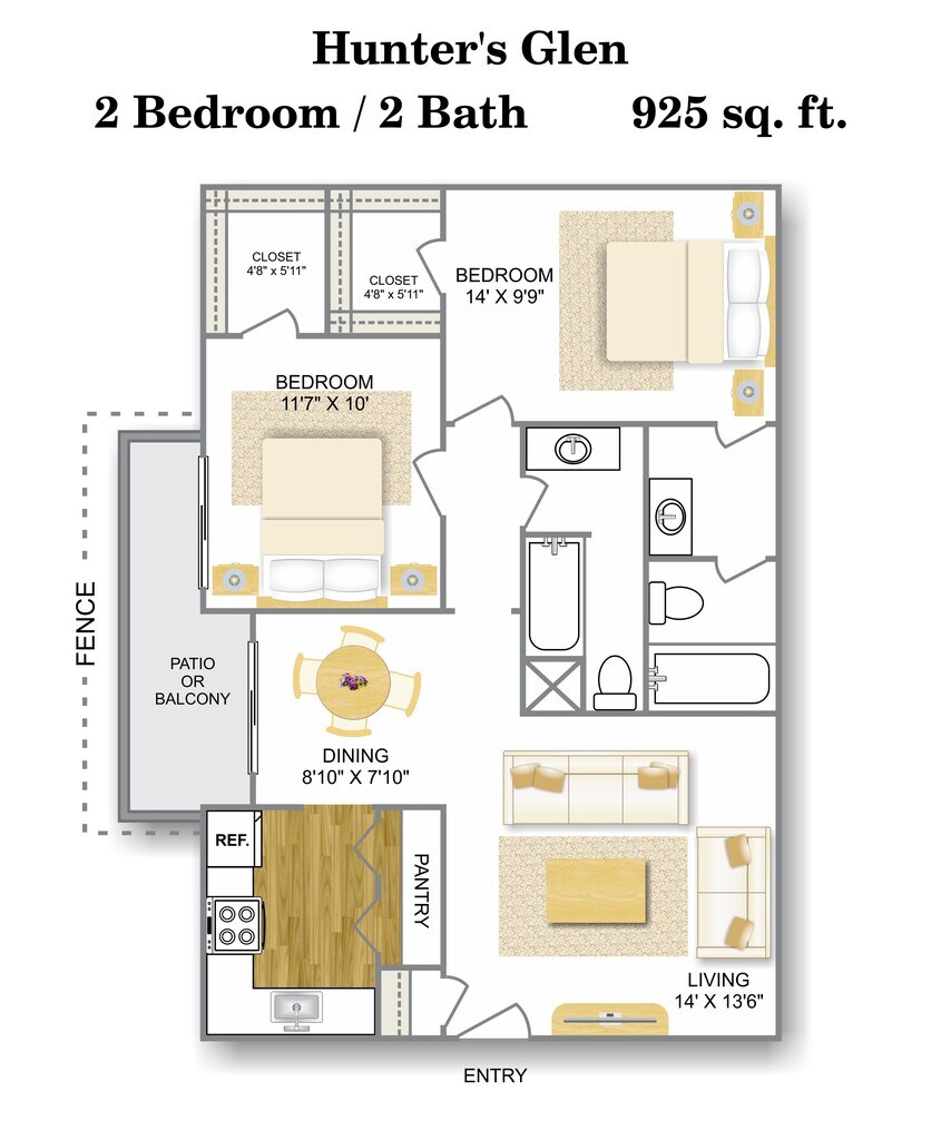 Hunter's Glen Apartments ofrece apartamentos de 1 a 3 Dormitorios desde $849 con 764–1,282 pies cuadrados. Aquí está el precio actual y la disponibilidad: