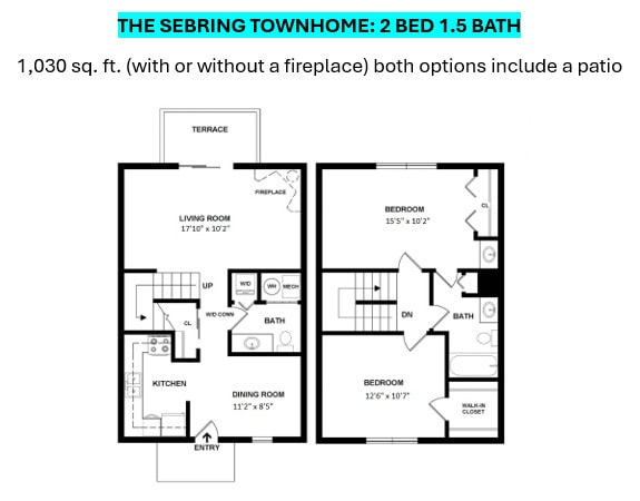 Modelo de apartamento: The Sebring TownhomeDesde $1,0752 Dormitorios, 1.5 Baños, 1030 sq ftNo DisponibleThe Sebring Townhome - Plano 1