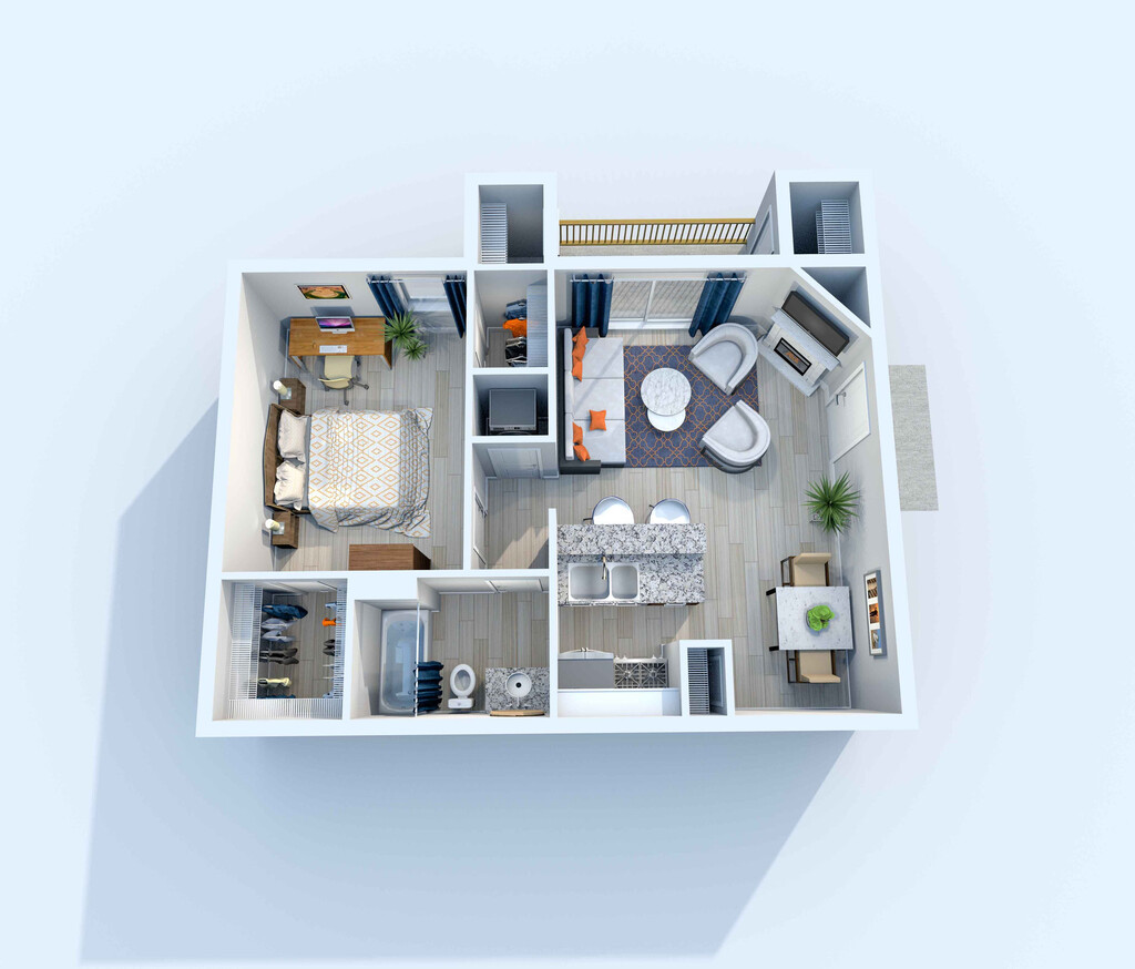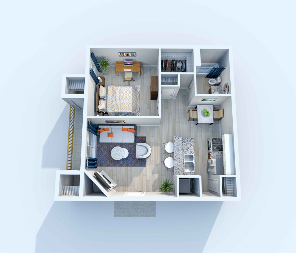 1 Dormitorio, 1 Baño, 517 pies²Disponible AhoraGalería del Modelo