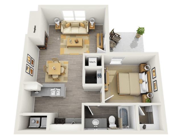 Modelo de apartamento: The TimberlineDesde $1,3921 Dormitorio, 1 Baño, 698 sq ftDisponible AhoraPlanosFotos![]()