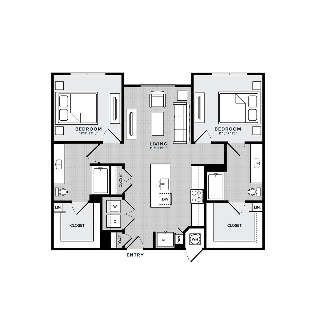 2 Dormitorios, 2 Baños, 1185 pies²Disponible AhoraGalería del Modelo
