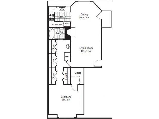 Modelo de apartamento: 1 Bed 1 BathDesde $1,0751 Dormitorio, 1 Baño, 825 sq ftDisponible Ahora![]()