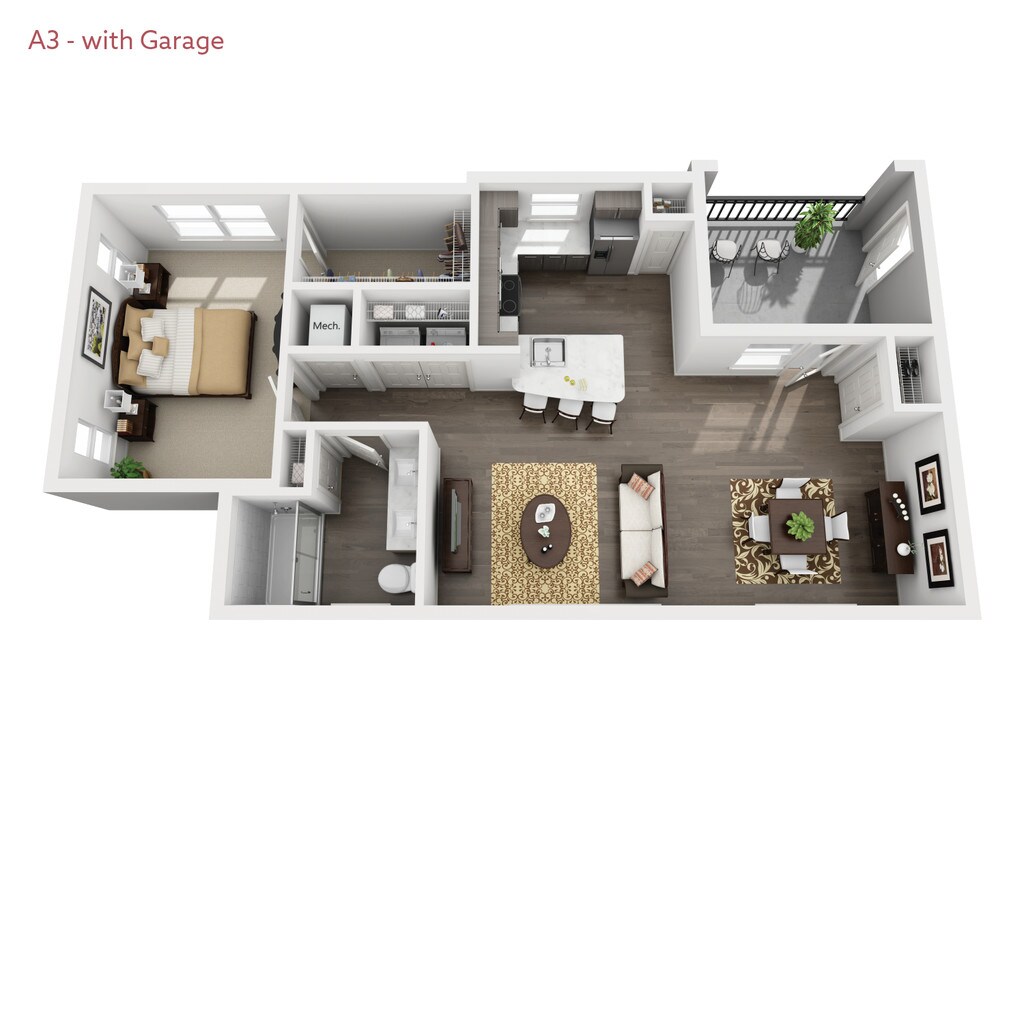 A1 - Plano 1 Unidad de apartamento: 1_0313Modelo de apartamento: A1$1,4701 Dormitorio, 1 Baño, 819 sq ftDisponible AhoraA2H (Garage Included)
