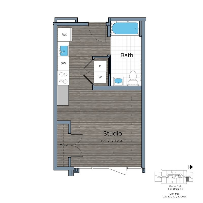 Estudio, 1 Baño, 398 pies²Disponible AhoraGalería del Modelo
