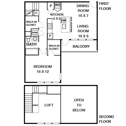 Modelo de apartamento: SunsetLlame para Precios1 Dormitorio, 1 Baño, 790 sq ftNo DisponibleSunset - Plano 1 2 Dormitorios