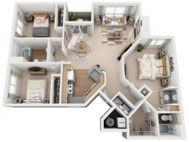Modelo de apartamento: Santa Ana3 Dormitorios, 2 Baños, 1310 sq ftDisponible Ahora![]()