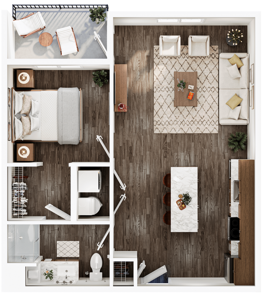 Modelo de apartamento: AlunaDesde $1,4391 Dormitorio, 1 Baño, 635 sq ftDisponible AhoraLos planos son representaciones artísticas. Todas las dimensiones son aproximadas. El producto y las especificaciones reales pueden variar en tamaño o detalle. No todas las características están disponibles en cada vivienda en alquiler. Por favor, consulta con un representante para obtener más detalles.