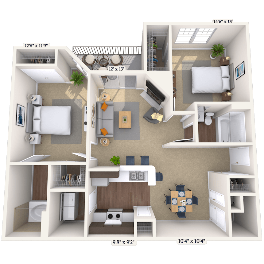 Modelo de apartamento: 22ADesde $1,4182 Dormitorios, 2 Baños, 1027 sq ftDisponible Ahora![]()