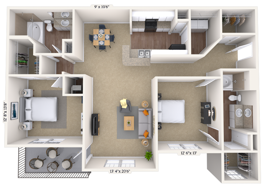 Modelo de apartamento: 22BDesde $1,7682 Dormitorios, 2 Baños, 1344 sq ftDisponible Ahora![]()