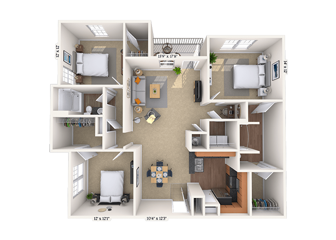 Modelo de apartamento: 11BDesde $1,3081 Dormitorio, 1 Baño, 880 sq ftDisponible October 25, 2025![]()
