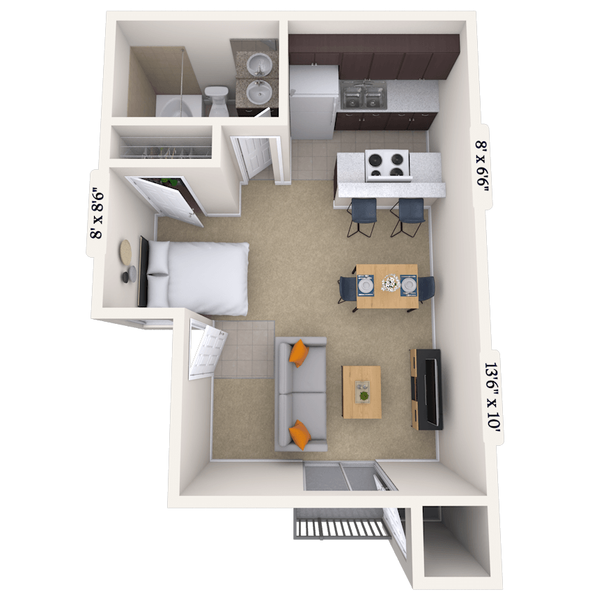 Unidad: 111113 - Plano 1 Unidad de apartamento: 111118Modelo de apartamento: The Regency$1,0531 Dormitorio, 1 Baño, 575 sq ftDisponible April 6, 2026The Italiante