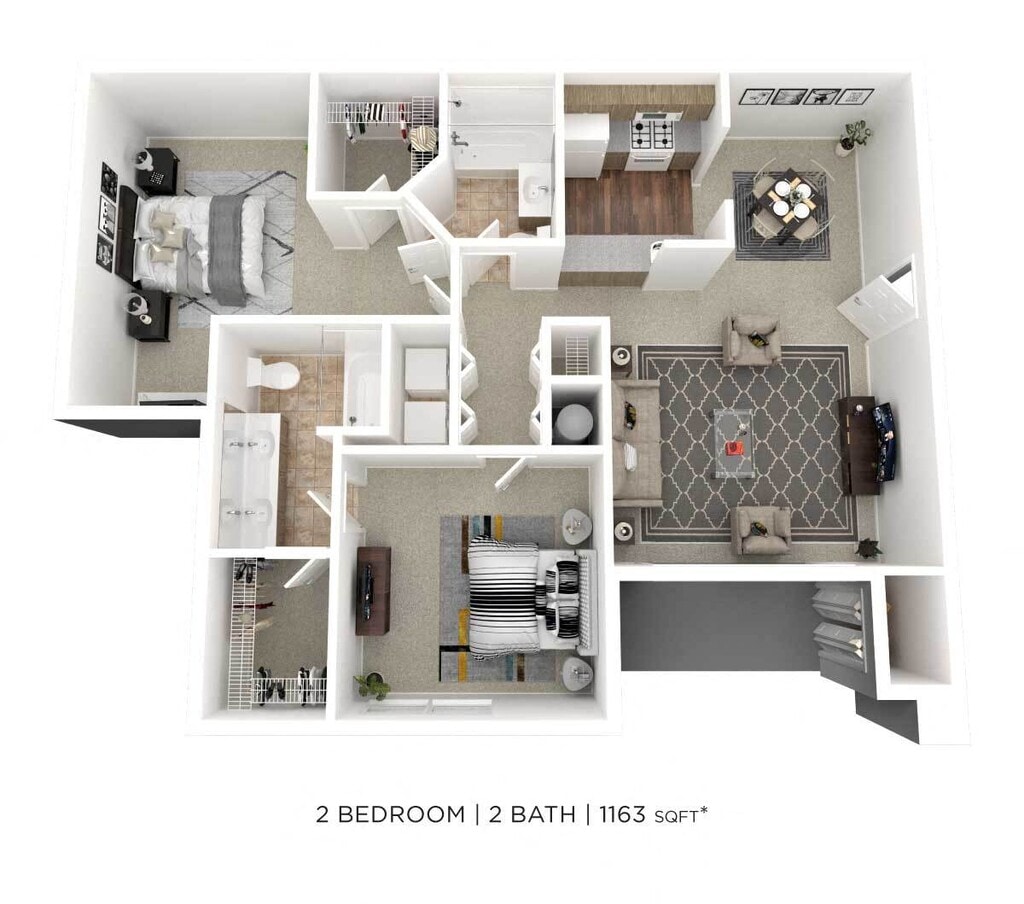 Modelo de apartamento: 2BR x 2BA, B1Desde $1,0002 Dormitorios, 2 Baños, 1163 sq ftDisponible November 14, 2025![]()
