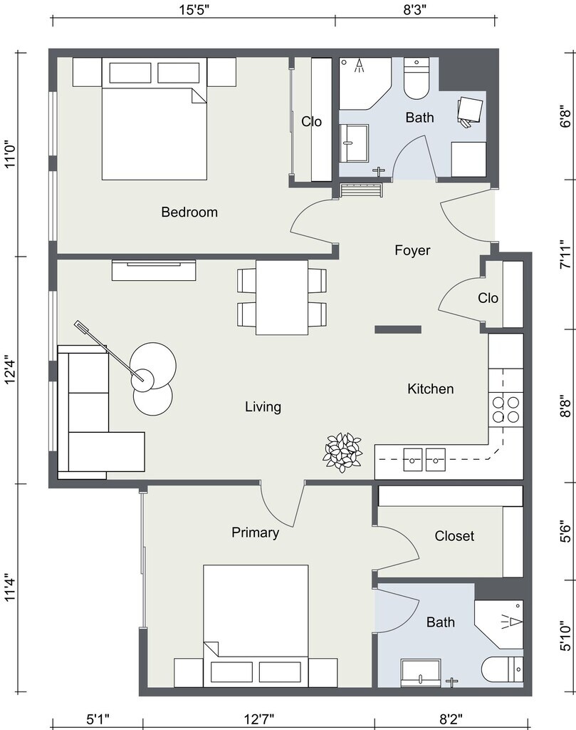 F&F Renovation 2x2 Future or Completed - Floorplan 3 Apartment Unit: 306Apartment Model: F&F Renovation 2x2 Future or Completed2 Bedroom, 2 Bath, 925 sq ftAvailable Now![]()