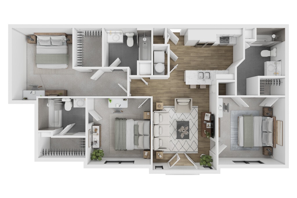 Modelo de apartamento: C1Desde $8153 Dormitorios, 3 Baños, 1200 sq ftDisponible Ahora![]()