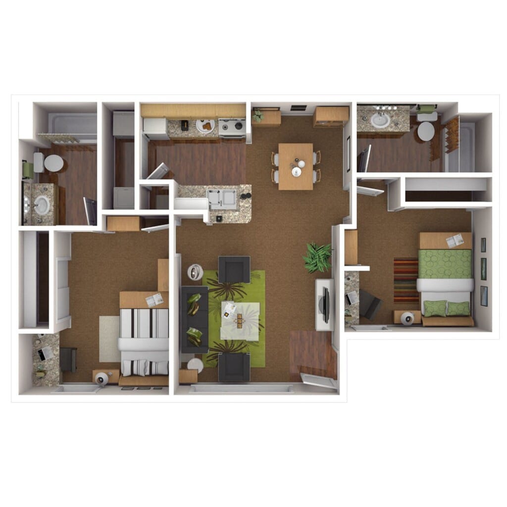 Modelo de apartamento: 2x2$6452 Dormitorios, 2 Baños, 381 sq ftDisponible AhoraPlanosFotos![]()