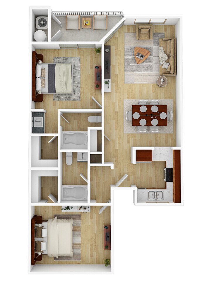 2 Dormitorios, 2 Baños, 950 pies²Disponible AhoraGalería del Modelo