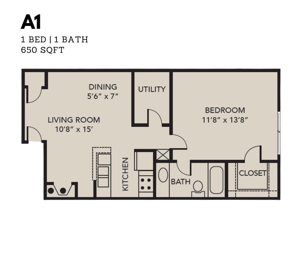 1 Dormitorio, 1 Baño, 650-754 pies²Disponible AhoraGalería del Modelo